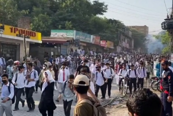 In Morgah, they blocked the Jhelum Road connecting the area to Katcheri Chowk, pelted stones on cars and set fire to tyres and college furniture.
